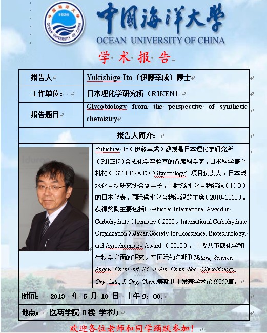 【学术报告】伊藤幸成博士:Glycobiology from the perspective of synthetic chemistry