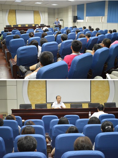 会上,院长管华诗院士就青岛海洋生物医药研究院(以下简称研究院)的建设情况向全体教职工做了说明。管院士回顾了医药学院的发展历程,80年代建设初期是以技术和工程研发为主,到90年代中期通过扩大引进国内外优秀人才加强了药学基础和应用基础研究,近十年来,海洋药物教育部重点实验室基础研究成果丰硕,为筹建研究院并从事海洋生物医药工程技术产品开发奠定了基础,指出通过不断发展壮大,海洋药物教育部重点实验室已经建立起从科学研究、技术开发、工程转化直至产业化服务经济发展的、围绕“成药”这一最终目标的完整海洋药物研发体系。当下,国内在药学研究领域同发达国家相比,成果转化率普遍较低(国内30-50%,国外约70%),产业化进程更是缓慢,成果“堆积如山”,但无法“顺流直下”产生成更多的新产品,基础和应用基础研究发展迅速,技术和工程开发却进展缓慢,严重制约了新药的产出,无法充分发挥药学研究对社会和经济发展的贡献。正值国家提出海洋强国战略,大力发展蓝色经济之际,海洋生物医药产业作为新兴的海洋支柱产业之一,为药学的迅速发展提供了强大的外在动力和难得的历史机遇。因此,研究院的建设既是药学学科发展的内在要求,更是蓝色经济特别是海洋生物医药产业发展的外在需求。