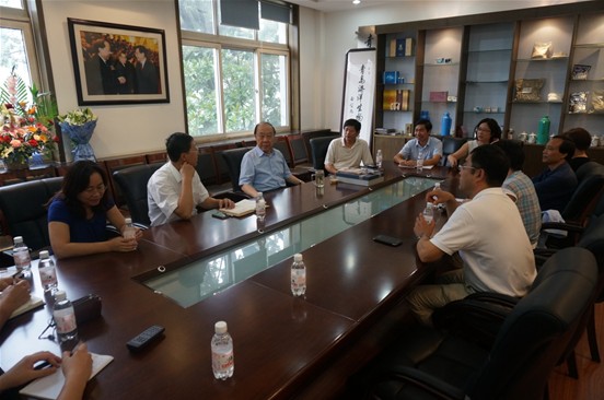 管华诗院士(左三)与老师们亲切交谈