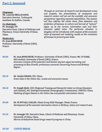 2013年青岛-布雷斯特“创新与蓝色发展”研讨会将于2013年10月29-30日在开云电竞网址学术中心1楼和3楼召开,届时我院于广利院长将作为会议副主席主持海藻分会场会议并作“Marine carbohydrate-based drugs research progress in China”的报告,江涛教授也将就“Chimcal modifications of akgae sacccharide and its blue utilizations”这一题目做主题报告。
