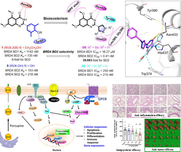 1. Shuxia Chen,# Jichen Yang,# Qiong Wu,# Jiaqi Zhou, Hui Shen, Xiangyu Wang, Yong Xu, Pingyuan Wang, Chang-Yun Wang,* Yansheng Ye,* Zhiqing Liu*. Discovery of 2-(pyrazol-4-yl)-quinazolin-4(3H)-one derivatives as subnanomolar BRD4 BD2 Inhibitors with high selectivity via a bioisosterism approach. J. Med. Chem., 2025, 68: 18314-18334. 2. Shuxia Chen,# Jichen Yang,# Xiangyu Wang, Xiaochun Liu, Xiuxue Li, Yansheng Ye, Pingyuan Wang*, Zhiqing Liu*, Chang-Yun Wang*. Marine natural product-inspired discovery of novel BRD4 inhibitors with anti-inflammatory activity. Eur. J. Med. Chem., 2025, 284, 117193. 3. Huaxuan Li, # Hong Yang, # Li Liu, # Jiahong Zheng, Qiongyu Shi, Bang Li, Xingcan Wang, Ying Zhang, Ruilin Zhou, Jian Zhang, Zhong-Zhu Chen, Chang-Yun Wang,* Yuanxiang Wang,* Xun Huang,* Zhiqing Liu*. One Stone Two Birds: Introducing Piperazine into a Series of Nucleoside Derivatives as Potent and Selective PRMT5 Inhibitors. 2025, Eur. J. Med. Chem., 2025, 281, 116970. 4. Jinfeng Li#, Bao Chen#, Zunyun Fu#, Jingjing Mao#, Lijun Liu, Xiaochen Chen, Mingyue Zheng, Chang-Yun Wang*, Chengyuan Wang*, Yue-Wei Guo*, Baofu Xu*. Discovery of a terpene synthase synthesizing a nearly non-flexible eunicellane reveals the basis of flexibility. Nat. Commun., 2024, 15: 5940. 5. Yue Zhou#, Na He#, Qian Liu, Rui Li, Lujia Yang, Wei Kang, Xinxin Zhang, Xiaoyu Xu, Guangshan Yao, Pingyuan Wang, Chang-Yun Wang*, Jinbo Yang*, Zhiqing Liu*. Structural optimization of marine natural product pretrichodermamide B for the treatment of colon cancer by targeting JAK/STAT3 signaling pathway. J. Med. Chem., 2024, 67, 10783-10794. 6. Wei Kang#, Shu-Shan Gao#, Jinping Bao, Lujia Yang, Yaqing Ma, Pingyuan Wang, Chang-Yun Wang*, Chengsen Cui*. Synthetic nicotinamide cofactors as alternatives to NADPH in imine reductase-catalyzed reactions. Org. Lett., 2024, 26: 7817-7821. 7. Ling Lv#, Mireguli Maimaitiming#, Yan Huang#, Jichen Yang, Shuxia Chen, Yanfeng Sun, Xuetao Zhang, Xin Li, Changhu Xue, Pingyuan Wang*, Chang-Yun Wang*, Zhiqing Liu*, Discovery of quinazolin-4(3H)-one derivatives as novel AChE inhibitors with anti-inflammatory activities, Eur. J. Med. Chem., 2023, 254, 115346. 8. Rui Li,# Yue Zhou,# Xinxin Zhang, Lujia Yang, Jieyu Liu, Samantha M. Wightman, Ling Lv, Zhiqing Liu*, Chang-Yun Wang*, Chenyang Zhao*. Identification of marine natural product pretrichodermamide B as a STAT3 inhibitor for efficient anticancer therapy. Mar. Life Sci. Technol., 2023,5:94–101. 9. Huaxuan Li#, Shumin Ouyang#, Yi Zhang, Keren Peng, Wei Fang, Zhiqing Liu*, Chang-Yun Wang*, Xiaolei Zhang*, Yuanxiang Wang*. Structural optimization of imidazo[1, 2-a]pyridine derivatives for the treatment of gastric cancer via STAT3 signaling pathway. Eur. J. Med. Chem., 2022, 244, 114858. 10. Zhiqing Liu*, Pingyuan Wang, Eric A. Wold, Qiaoling Song, Chenyang Zhao, Changyun Wang*, Jia Zhou*. Small-molecule inhibitors targeting the canonical WNT signaling pathway for the treatment of cancer. J. Med. Chem., 2021, 64, 4257-4288. | ||||||