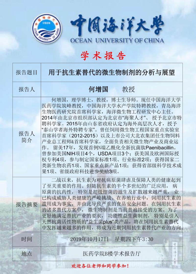 学术报告:用于抗生素替代的微生物制剂的分析与展望