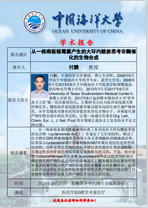 报告题目:从一株南极链霉菌产生的大环内酰胺思考非酶催化的生物合成