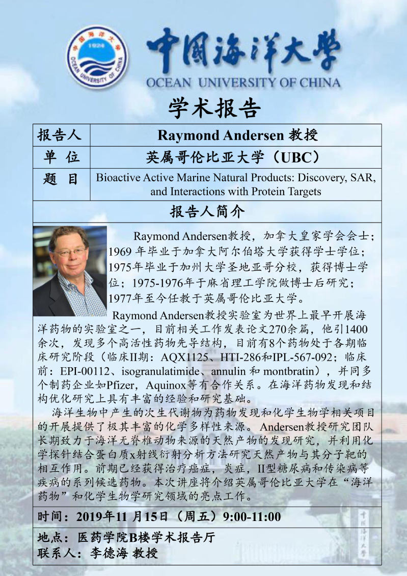 报告题目:Bioactive Active Marine Natural Products: Discovery, SAR, and Interacrions with Protein Targets