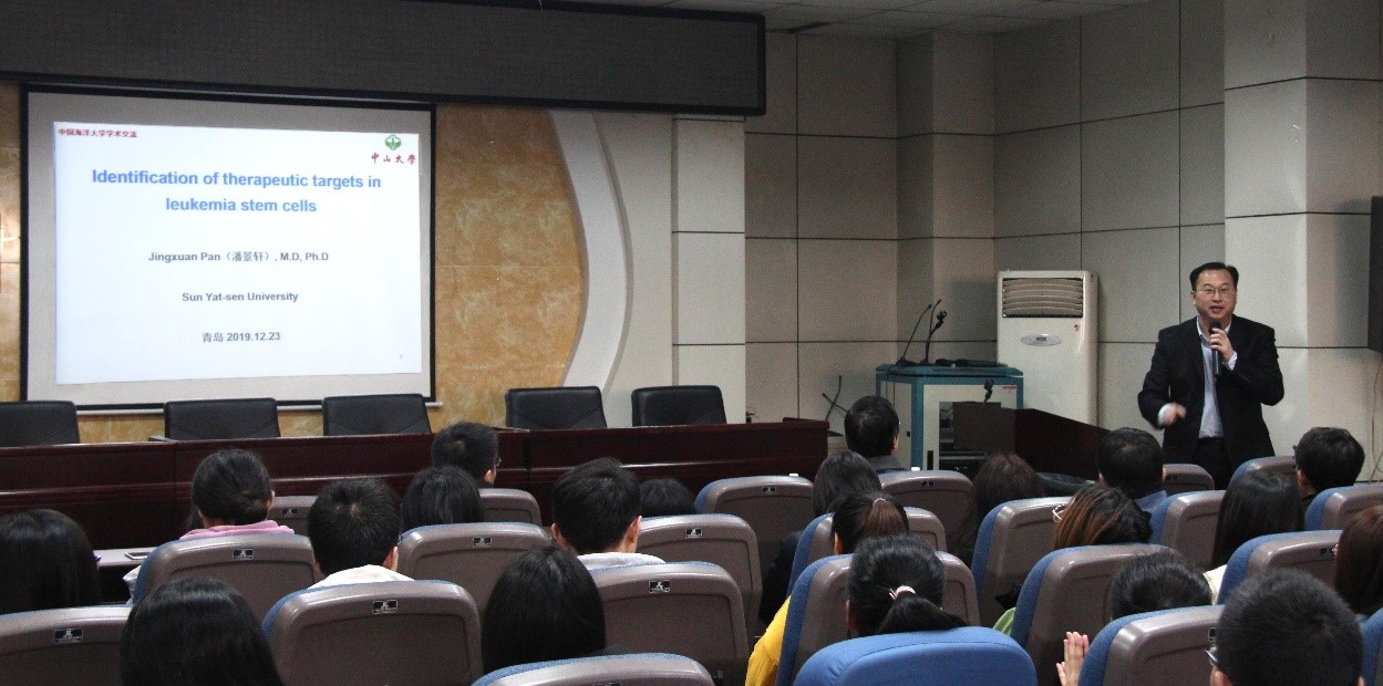2019年12月23日上午,中山大学潘景轩教授应邀访问开云电竞网址海洋药物教育部重点实验室,在B楼学术报告厅做了题为“Identification of Therapeutic Targets in Cancer Stem Cells”的学术报告。报告会由省重点实验室主任于广利教授主持,学院师生积极聆听潘教授精彩报告。