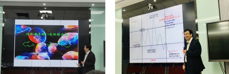 11月20日,北京大学化学与分子工程学院余志祥教授来海洋药物教育部重点实验室进行学术交流,此次交流是分子合成中心系列高峰论坛第一讲。学院党委书记王震和院长吕志华分别与余志祥教授座谈并表示诚挚欢迎。余志祥教授报告会在海洋药物教育部重点实验室B楼学术厅举行,李德海副院长首先介绍了余教授的科研经历,徐涛教授全程主持报告会。余教授在极其幽默轻松的介绍下开始其报告,他首先指出许多药物分子和活性天然产物分子中具有复杂的环系结构,而这往往是化学家合成这些复杂分子的最大挑战之一。围绕这一科学问题,余志祥课题组在过去十多年里发展了系列新型成环反应,为化学家合成环系分子提供了强有力的合成工具,从而可帮助他们用于高效合成结构复杂多样的天然产物和药物分子。在这次讲座中,余志祥教授还对其课题组开发的成环反应与应用进展进行了系统总结,同时也希望能启发更多科学家利用这些成环反应解决合成中的诸多挑战。参加报告会的师生都被余教授精彩的报告吸引,并围绕相关科研问题展开交流讨论,收获了学术研究方法和思路的深刻启迪。