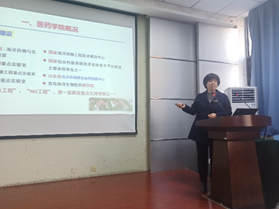 徐海伟副院长对李春霞副院长等人表示热烈欢迎和感谢,并向与会人员介绍三位教师的教学科研经历。随后,李春霞副院长就海大海洋药物教育部重点实验室人才培养工作做了“药学创新人才的探索与实践”报告,在介绍海洋药物教育部重点实验室和药学专业概况的基础上,从“课程思政,海洋特色,国际合作,科教融合,第二课堂”五个方面重点阐述了重点实验室人才培养方面的新举措及成效。