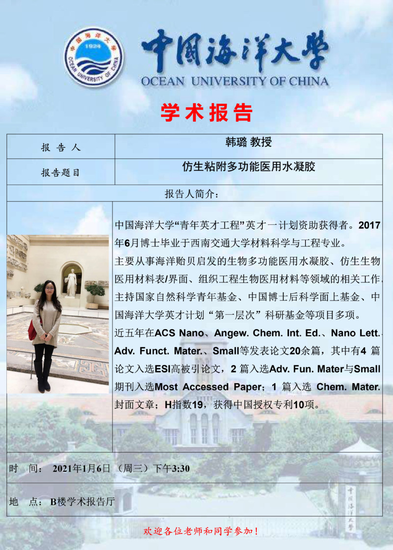 报告题目:仿生粘附多功能医用水凝胶