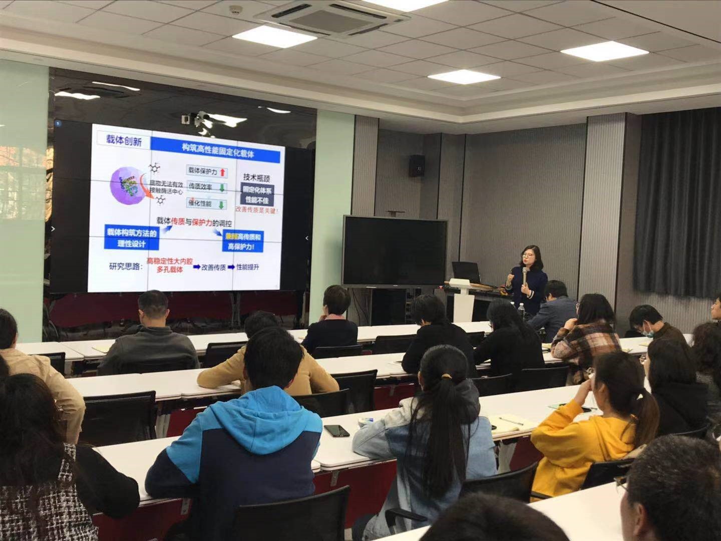 陈瑶教授的报告内容为《生物大分子的限域精准固定及平台化应用》。陈教授的工作长期聚焦酶等生物大分子的限域精准固定及相关生物医药材料及应用平台的创新构建,报告介绍了有关生物大分子领域的诸多前沿领域的研究,对于固定化载体构筑建立了分步构筑和仿生构筑等创新方法,通过多维度调节来解决固定化生物制剂性能不佳的问题;并且开发了系列固定化新策略,采用蛋白模版效应和原位制剂策略等创制了一批新型酶制剂,突破了固定化生物制剂剂型单一等问题和挑战。