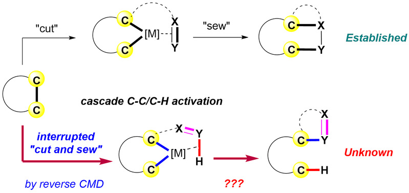 图2. Reverse CMD作为关键步骤的串联C-C/Colefin-H键反应
