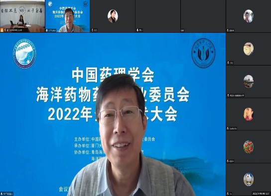 2023年1月7日至8日,中国药理学会海洋药物药理专业委员会2022年全国学术大会线上顺利举办。本次会议由中国药理学会海洋药物药理专业委员会主办,厦门大学药学院承办,青岛海洋科学与技术国家实验室、海洋药物教育部重点实验室、中国药学会海洋药物专业委员会协办。大会开幕式由厦门大学药学院张晓坤教授主持,厦门大学副校长江云宝、中国药理学会海洋药物药理专业委员会主任委员杜冠华教授致辞。