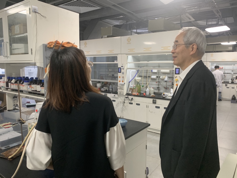 座谈会后,席振峰院士还参观了医药学院鱼山校区和浮山校区的药物合成实验室。