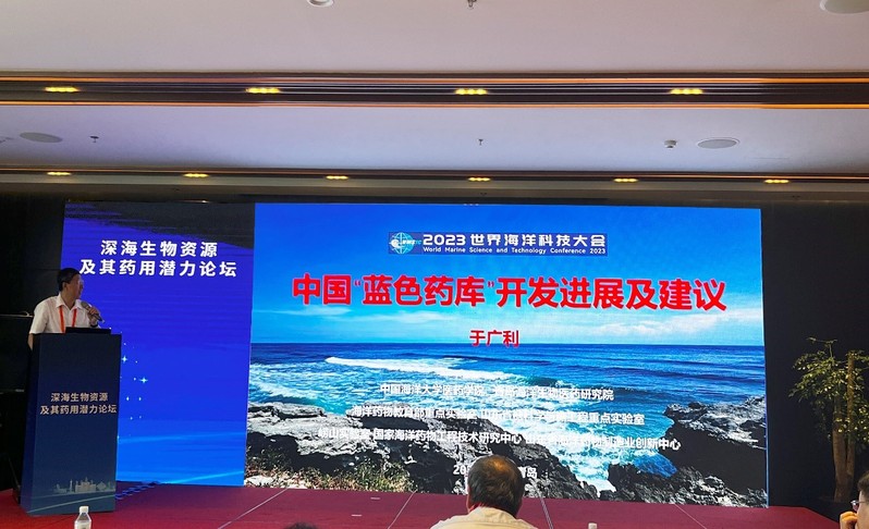 于广利教授受邀在“深海生物资源及其药用潜力分会场”作题为“中国‘蓝色药库’开发进展及建议”的会议报告,引起参会专家的强烈共鸣。报告分析了国际海洋药物研究开发现状及国际国内的海洋新药及其影响力,与会专家一致认为海洋生物是蓝色药库开发的宝贵资源,海洋药用生物资源是世界海洋强国医药产业经济创新发展的重要战略资源。于广利教授在报告中提出国际25个创新药物中有8个属于糖类,6个肽类ADC药物,在中国上市的17个海洋药物中,有9个属于糖类药物,同时分享了进入临床研究的海洋糖类新药BG136的研发历程,在开云电竞网址,青岛海洋生物医药研究院和正大制药青岛有限公司的接续攻关下,研发团队在药效学、药理毒理学及作用机制等方面进行了深入系统的研究,作为首个进入临床试验的免疫抗肿瘤海洋糖类药物,正在进行Ⅰ期临床研究。参会听众表示收获满满,受到不少启发。本会场参会人员有200余人,其中我院师生有30余人参会学习。