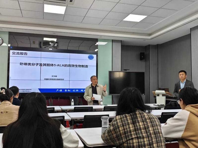 4月22日上午,中国科学院微生物研究所王为善研究员应邀到海洋药物教育部重点实验室进行交流访问,并作了题为“卟啉类分子及其前体5-ALA的高效生物制造”的精彩学术报告。报告由于文功教授主持,实验室师生积极参与其中。