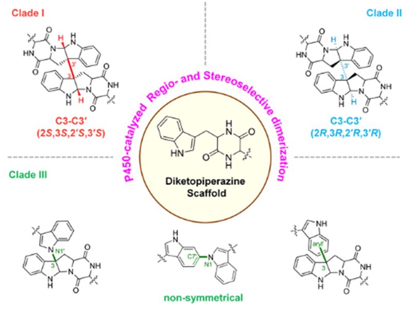 图1. 二聚化方式构成了di-DKPs化学多样性的基础