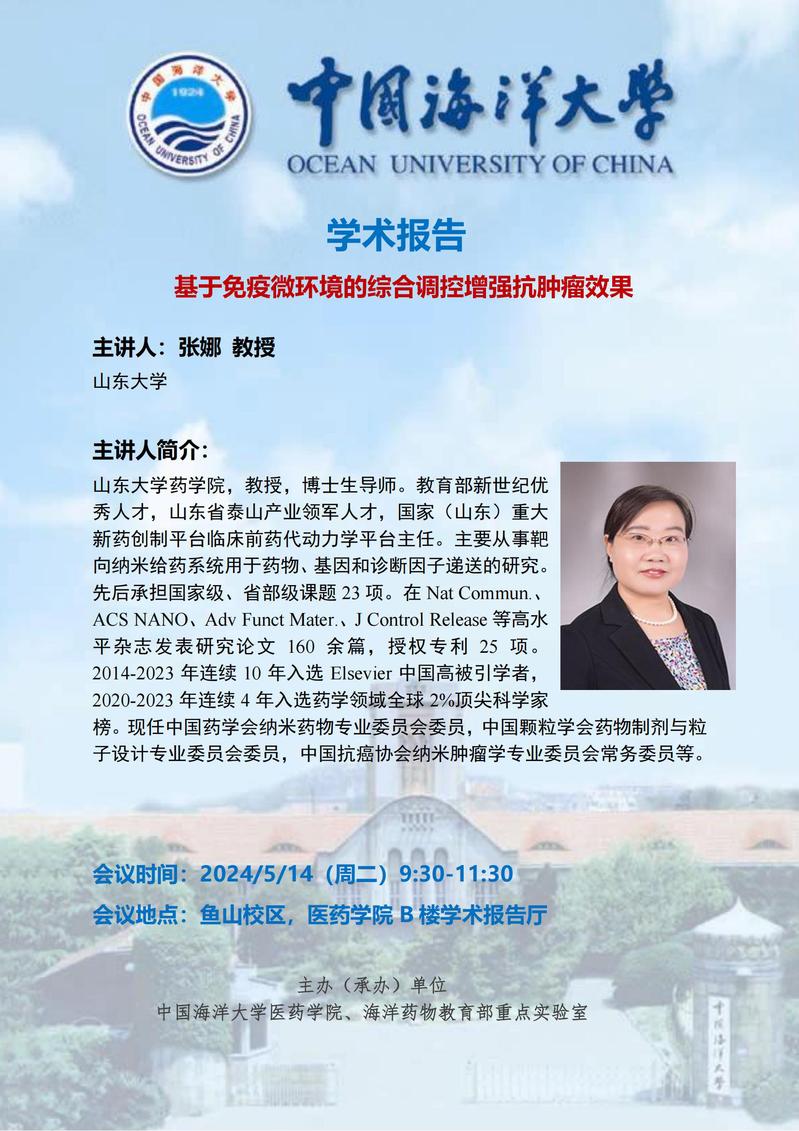 报告题目:基于免疫微环境的综合调控增强抗肿瘤效果
