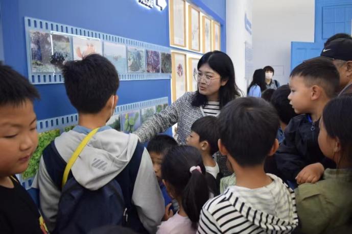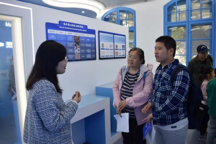 海洋药用生物资源展厅的主讲由李风娥老师担任。李风娥老师用通俗易懂的话语娓娓道来海洋药用生物资源的有关内容及海洋药物的故事,小朋友们认识听讲,积极回答老师提出的有趣的小问题。同时,也有不少家长参观后对海洋药物产生了兴趣,进一步向老师询问有关海洋药物的有关问题,李老师耐心地为家长们一一解答。