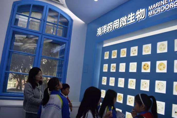 走进海洋药用生物资源中心,琳琅满目的海洋药用生物标本目不暇接,长相奇特的大海马、身体细长的刁海龙、像盔甲一般的中华鲎、种类繁多的海带、颜色淡雅的石花菜、形态各异的海洋药用微生物等纷纷吸引着小朋友们充满求知渴望的清澈目光。