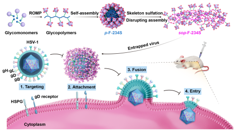 图1. 岩藻聚糖模拟物抗HSV-1的作用机制