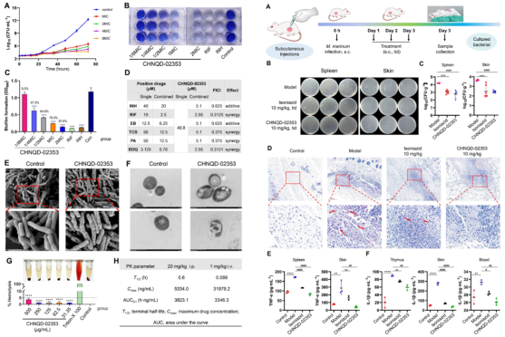 图3. CHNQD-02353的生物相容性及体内外抗菌效果