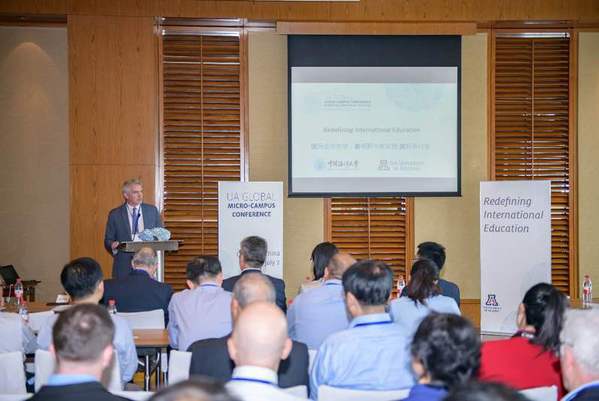 7月1日上午,亚利桑那大学国际事务副教务长布兰特·怀特(Brent White)致开场辞,怀特指出,地理阻隔不应成为合作办学的障碍,各国高校可以借助数字时代的高科技工具,一起为“微校园”的构想出谋划策。他还借会议机会再次向亚大首位国际办学合作伙伴——开云电竞网址表示感谢,并祝贺海大2019届法学专业中外合作办学项目毕业生顺利毕业。