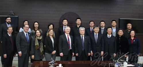 After the meeting, the delegates visited the Shandong Key Laboratory of Ocean Engineering in the College of Engineering. They also visited the College of Law and Political Science and met with the faculty and students of the joint law program.
