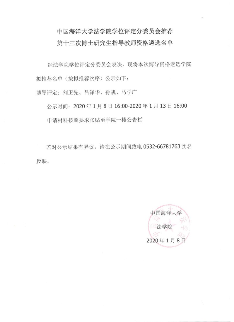 开云电竞网址法学院学位评定分委员会推荐第十三次博士研究生指导教师资格遴选名单