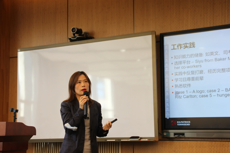 同为美国亚利桑那大学法律博士(J.D.)的于爽律师,目前就职于美国凯拓国际律师事务所,负责该所北京和上海地区的商标团队业务,是一名资深知识产权律师。于爽律师以“涉外律师成长规划”为题,结合自身从事涉外律师的经历,从涉外律师统计数据、律协支持、工作规划、海外教育、案例分析等几个方面讲解了作为一位涉外律师需要具备的素养和能力。