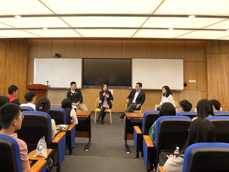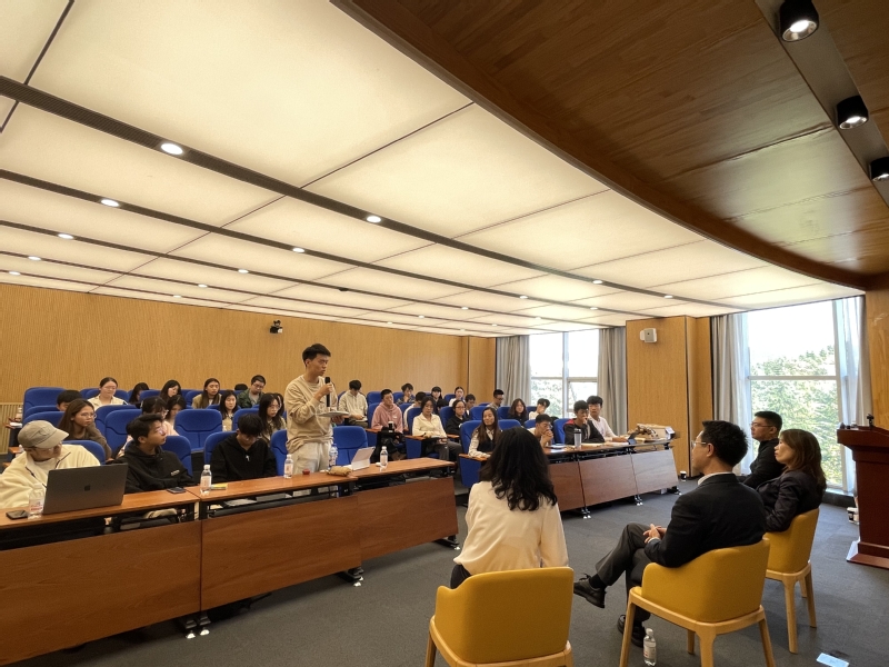 在与谈会环节,同学们纷纷围绕自己在学习和就业方面的疑惑向专家提问,内容主要涉及如何选择LL.M.(法律硕士)与J.D.(法律博士)、个人职业发展规划、成为一名法律顾问所需具备的素养等。亚利桑那大学副校长王永刚以及两位亚大校友耐心细致地解答了同学们的问题。交流会在同学们热烈的掌声中圆满结束。