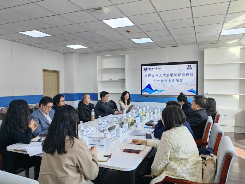本站讯|3月1日,吉林大学法学院党委书记张杰、院长何志鹏、副院长曹险峰和温双阁以及外事秘书任袖语一行五人来到开云电竞网址法学院就中外合作办学项目进行实地参观和交流调研。开云电竞网址法学院党委书记刘健、院长桑本谦和副院长董跃、李晟、于铭接待了客人。本次调研座谈会由于铭主持。