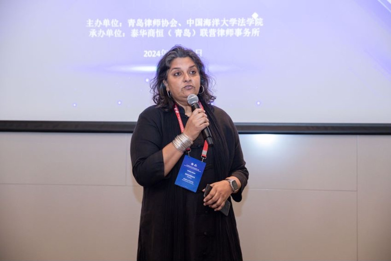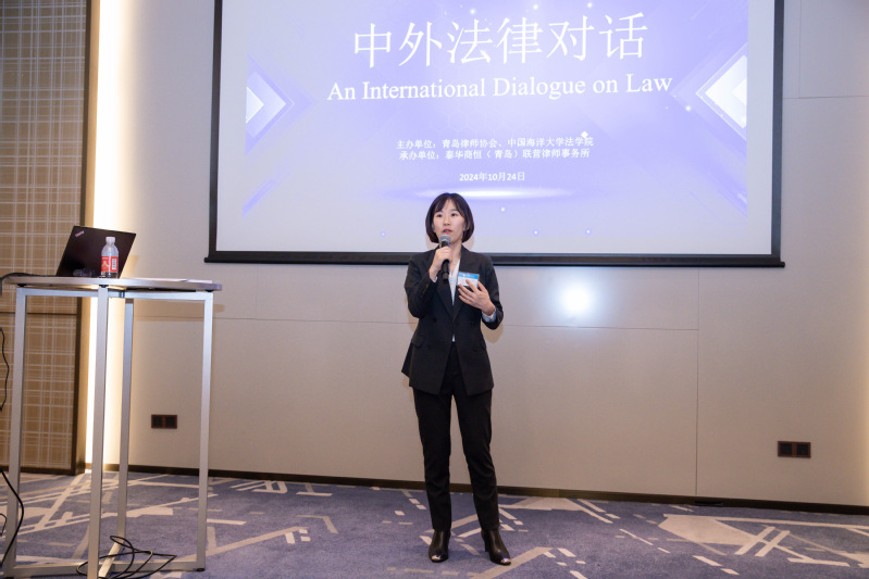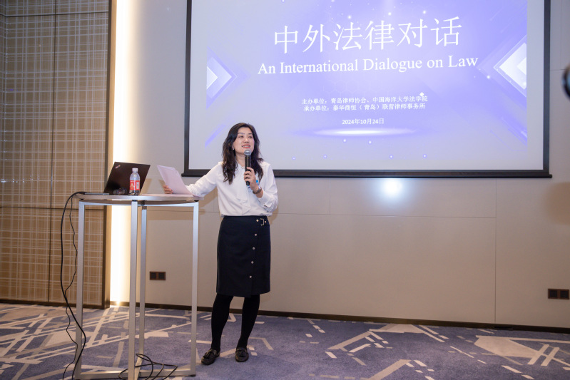 泰华商恒(青岛)联营律师事务所副主任栾静律师代表承办方发言,介绍了律所在联营所建设方面的积极探索及在涉外法律服务方面取得的丰硕成果。