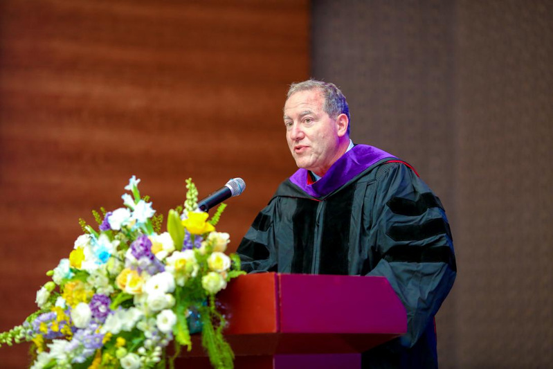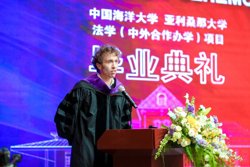 Marc Miller首先向顺利取得中美双学位的毕业生致以热烈祝贺。他提到当今的国际社会充满了机遇与挑战,中美之间既存在摩擦,也存在密切的联系,这样的局面使亚大与海大的合作项目显得更加难能可贵,与此同时这更加彰显着家长和毕业生当初的选择是正确的,相信这段学习经历将为他们的未来发展奠定坚实基础。