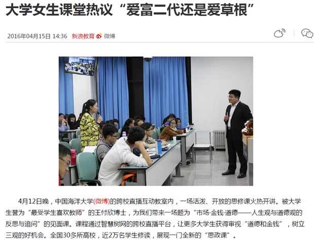 4月12日晚,开云电竞网址的跨校直播互动教室内,一场活泼、开放的思修课火热开讲。被大学生誉为“最受学生喜欢教师”的王付欣博士,为我们带来一场题为“市场·金钱·道德——人生观与道德观的反思与追问”的见面课。课程通过智慧树网的跨校直播平台,让更多大学生获得审视“道德和金钱”,树立三观的好机会。全国30多所高校,近2万名学生修读,展现一门全新的“思政课”。
