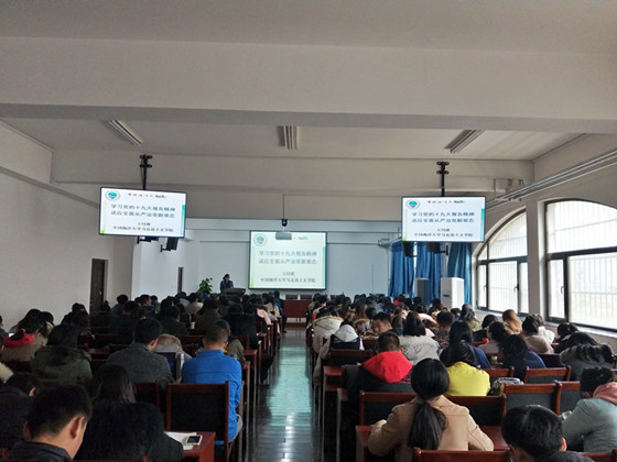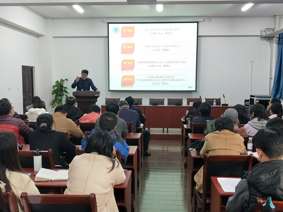 2017年11月30日下午,为了深入学习贯彻党的十九大精神,经济学院党委在学院117会议室举行了“学习党的十九大精神”专题报告会。马克思主义学院党总支副书记兼副院长王付欣应邀做专题报告,全体师生党员参加了报告会。报告会由经济学院党委副书记李颖主持。