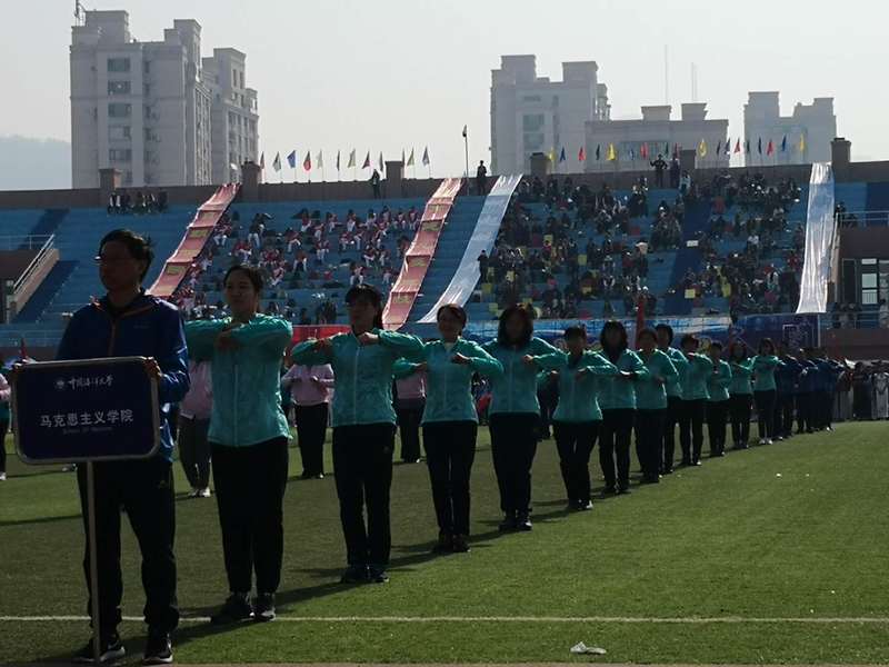 开幕式上,全校教职工代表进行了广播操表演,我院共有21名教职工参加。当高亢的音乐响起,我院教师们精神抖擞,意气风发,动作整齐划一,紧扣音乐节奏,伸手、扩胸、弯腰、踢腿、跳跃,每一个动作都张弛有度,舒缓流畅,赢得了在场观众们热烈的掌声。据悉,为了在校运动会开幕式上展示马院风采,老师们不仅按时参加集体训练,而且利用闲暇时间熟悉每一个动作,确保广播操的完美呈现。认真对待每一件事,是我院长期以来秉承的工作态度,相信在下一届运动会上,我院教师会再创佳绩。