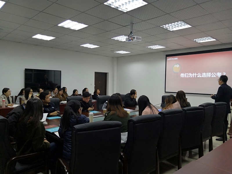 为了消除我院毕业研究生目前面临的公考困惑,有针对性的对我院毕业生公考岗位筛选及相关岗位就业情况做详细指导,提高学生对公务员相关考试的深入了解,从而使学生更好的了解就业形势与政策、合理规划应战,避免就业误区。11月13日晚19:20,我院于210会议室召开“合理规划应战,克服就业务区”就业指导培训会。本次指导培训会特邀请中公教育(山东分公司)岗位指导老师郝广义主讲,本次会议由学院辅导员裴消消老师主持,学院全体研究生参加了本次培训会。