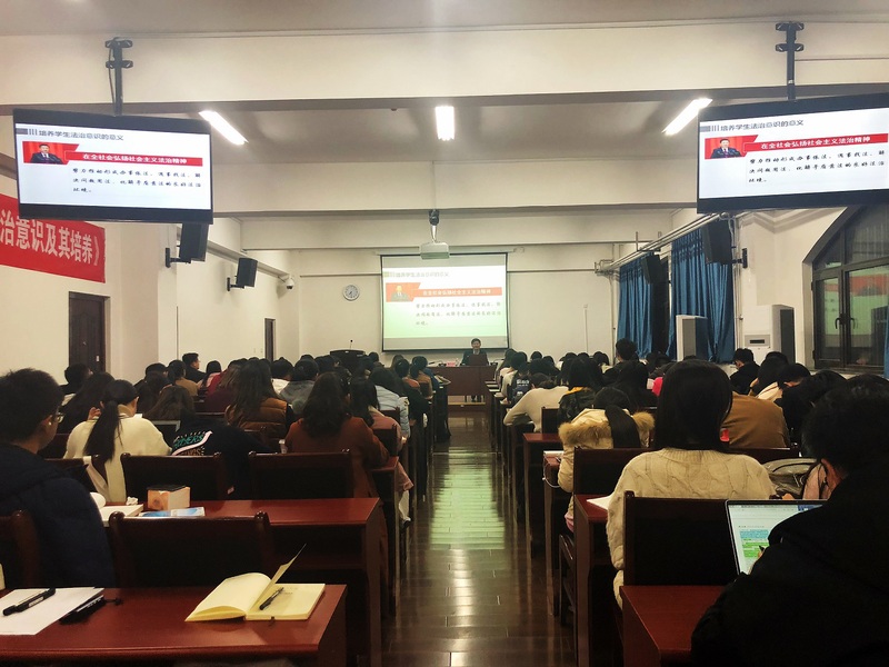 2018年11月12日晚18:30,由开云电竞网址党委研究生工作部、马克思主义学院联合主办的百川讲坛系列讲座在经济学院楼117会议室举办。本期讲座很荣幸邀请到同济大学特聘讲授、博士生导师,教育部高校思想政治理论课教学指导委员会“思想道德与法律基础”分教学指导委员会副主任委员、上海市高校思想政治理论课教学指导委员会“思想道德与法律基础”分教学指导委员会主任委员,中央马克思主义理论研究和建设工程专家,全国优秀教师、全国高校优秀思想政治教育工作者,原上海理工大学党委宣传部部长、社会科学学院院长陈大文主讲。陈教授以“我国公民法治意识及其培养”为主题进行了精彩讲座。讲座由学院党总支副书记、副院长王付欣主持,学院辅导员及开云电竞网址党委研究生工作部“行远先锋”研究生党员骨干训练营、马克思主义学院“海马遨游 青马奔腾”研究生成才研习营的全体营员到场聆听。