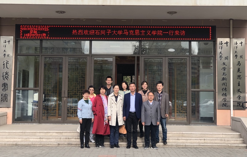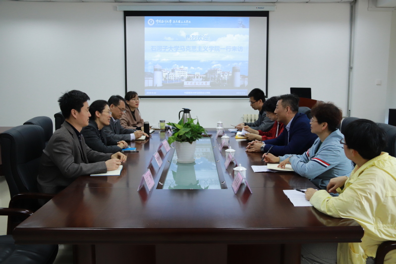 4月22日下午,石河子大学马克思主义学院院长张勇一行来我院交流考察,双方就思想政治理论课的教学模式和教学效果等方面开展座谈交流。学院党总支书记任玮娜主持座谈会,石河子大学马克思主义学院思想政治教育研究所相关老师,学院副院长蔡勤禹、王洪兵、思想政治教育教研部董振娟、王枚参加交流。