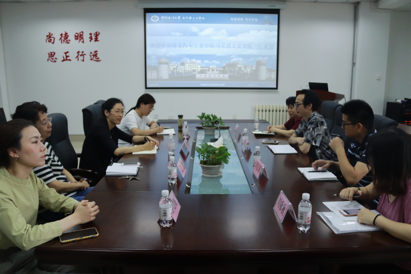 6月18日上午,湖北汽车工业学院马克思主义学院思想政治理论课部一行来我院交流考察,双方就思政课教学改革、团队建设与人才培养等方面开展座谈交流。我院党总支书记任玮娜主持座谈会,湖北汽车工业学院马克思主义学院思想政治理论课部相关老师,我院思想政治教育教研部王萍、董振娟、孙恺临参加交流。