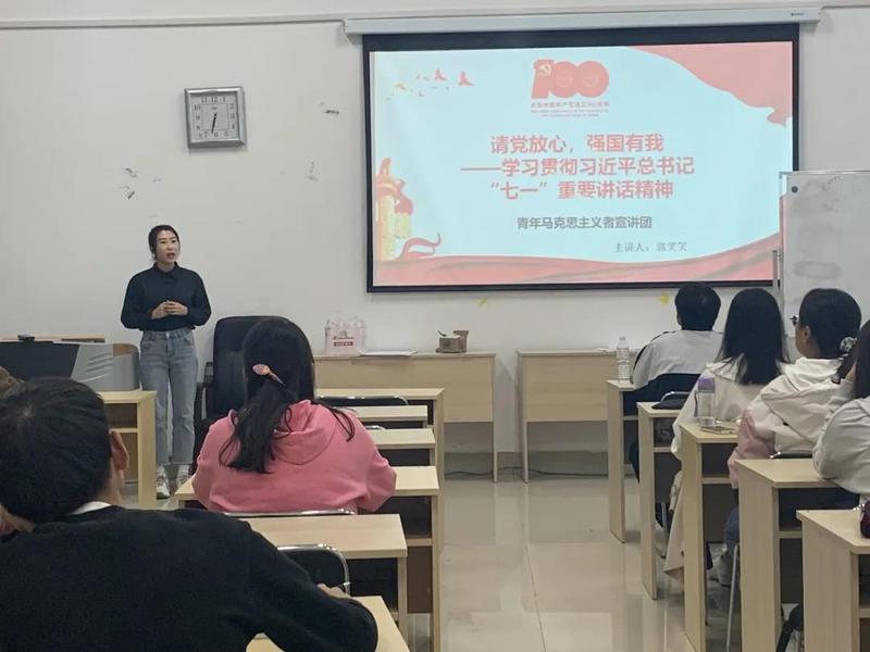 2021年7月1日,庆祝中国共产党成立100周年大会在北京天安门广场隆重举行,习近平总书记发表重要讲话。为进一步引导青年学子学习“七一”重要讲话、体悟思想伟力,青年马克思主义者宣讲团重点以习近平总书记“七一”重要讲话精神为主题,展开了新一轮的宣讲活动,取得良好成效。