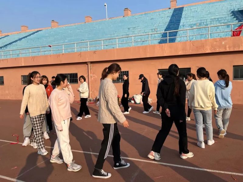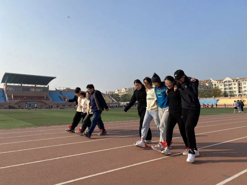 2021级硕士研究生孙天翼带领同学们完成热身活动后,趣味项目正式开始。第一部分为五人组赛队,选手们自行组队,依次完成三个项目,分别是踩气球、五人六足和50米接力赛。第一个项目是踩气球,在阵阵欢声笑语和激烈的对抗中,同学们都奋力保护自己脚边的气球。五人六足项目考验的是队员之间的协调配合,同学们齐声喊着口号,紧紧挽着队友的手臂,步伐整齐划一地向终点迈进。接力棒在一个一个人的手中传递,50米接力赛展现了同学们的青春朝气和队员之间的紧密团结。每支队伍齐心协力,配合默契,顺利完成团体项目。
