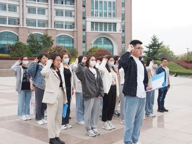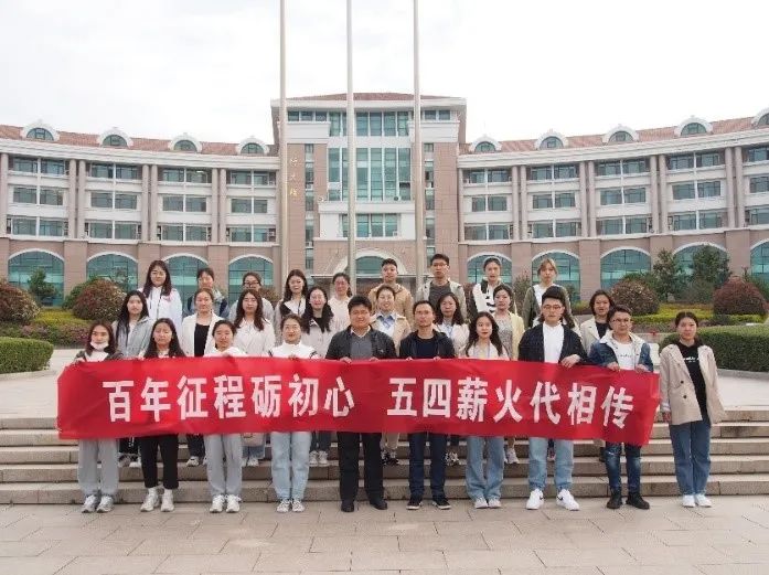 为庆祝中国共产党成立100周年,纪念五四运动102周年,学习“五四精神”,在团员青年中扎实开展党史学习教育,5月6日上午,马克思主义学院团总支于行远楼升旗台前开展“百年征程砺初心,五四薪火代相传”主题团日活动,学院党总支副书记、副院长王付欣,军事教学部主任郭新昌,团总支老师王俊琦、缪元珍,以及学院共青团员参与。活动由王俊琦主持。