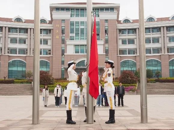 七时整,国旗中队的旗手迈着铿锵有力的步伐,怀着饱满的激情走向国旗台,伴着激昂雄壮的国歌,鲜艳的五星红旗冉冉升起,在场师生庄严肃立,向国旗行注目礼。