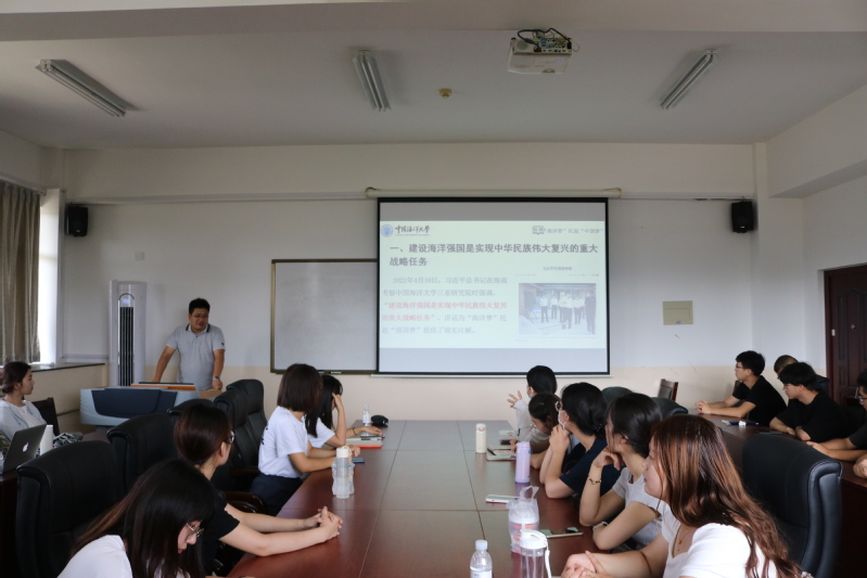 为感悟习近平总书记深厚的海洋情怀,同时进一步增强学生防疫意识、安全意识,8月18日上午,马克思主义学院于经济楼501会议室组织开展2022年夏秋季学期“开学第一课”。学院党委副书记、副院长王付欣,辅导员王俊琦、缪元珍讲授相关内容,学院全体研究生参会。