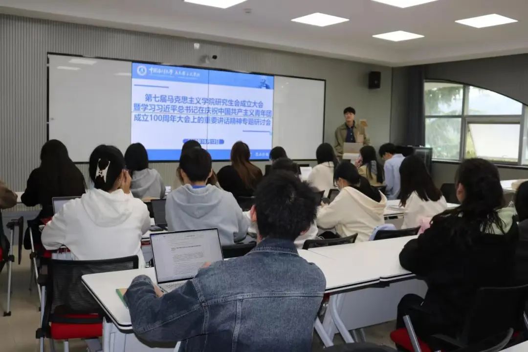 10月13日下午,马克思主义学院于学院210会议室召开第七届研究生会成立大会暨建团100周年大会精神专题学习研讨会。马克思主义学院团委老师王俊琦、缪元珍出席会议。会议由第七届院研究生会主席孙天翼主持。