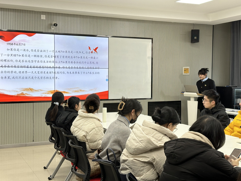 随后,党支部书记赵悦、副书记葛玉萱带领全体党员朗读《雷锋日记》片段,学习领会雷锋同志全心全意为人民服务、敢于牺牲、不计较个人得失的精神品质。赵悦强调:“在今天,学习‘雷锋七问’,仍能带给我们深刻的启发与思考,激励我们不忘初心,不负新时代的使命担当,写好人生答卷,实现人生价值。”