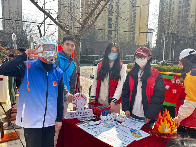 活动现场,团员青年向社区居民讲解了灭火器、逃生面罩等消防器材的使用方法,详细介绍了家庭火灾的预防措施和应急逃生方法,并结合特定火灾场景讲解火灾逃生自救要领。