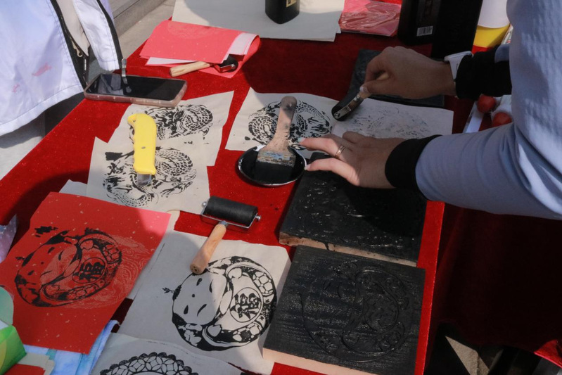 通过团员青年对扎染、拓印等各类传统工艺的示范与引导,居民们现场尝试制作起了手工艺作品,不仅学习了拓印的基本制作方法,还体验到DIY艺术扎染制作的乐趣,感受到了中国传统手工艺的独特魅力。