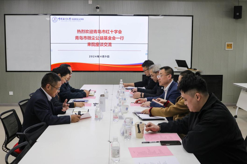 为推动青岛红十字会与微尘公益研究院成立筹备工作,推进《微尘大爱 温暖你我》一书的编写工作,近日,青岛市红十字会党组书记、常务副会长高嵘,党组成员、副会长刘子升,筹资财务部部长陈敏,青岛市微尘公益基金会秘书长丁德亮,办公室主任陈汉霖一行来院进行座谈交流,学院党委书记任玮娜、院长蔡勤禹、副院长张运君以及部分研究生参加座谈。