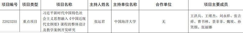 中国近现代史纲要教研部张运君教授作为牵头人申报2021年山东省本科教学改革研究重大项目《习近平新时代中国特色社会主义思想融入本科课程研究》获批立项。2023年,张运君教授申报的山东省本科教学改革研究重点项目“习近平新时代中国特色社会主义思想融入《中国近现代史纲要》课程的整体设计及教学案例开发研究”获批立项。